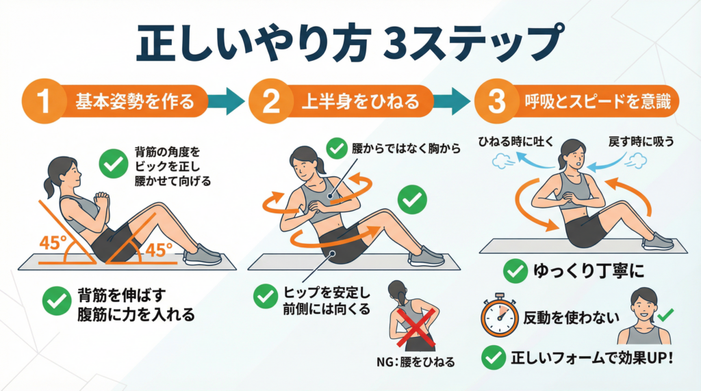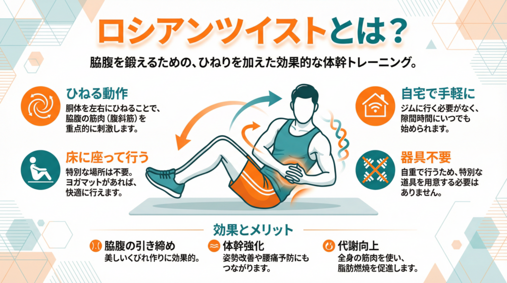 この記事では、ロシアンツイストの基本的なやり方から、効果を高めるコツ、よくある間違いまで徹底解説していきます。