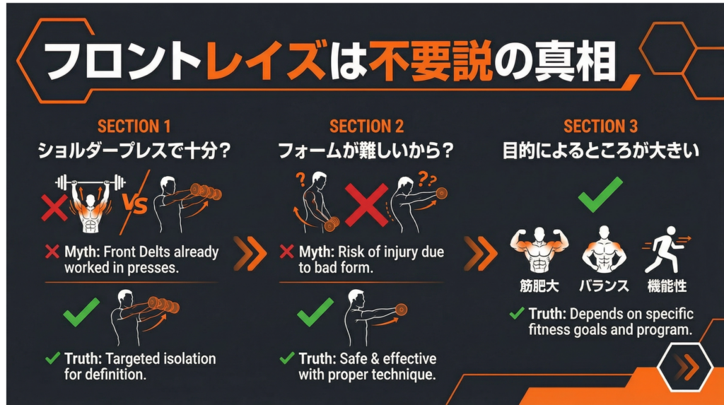 トレーニングの情報を調べていると、「フロントレイズはいらない」という意見を見かけることがあります。
