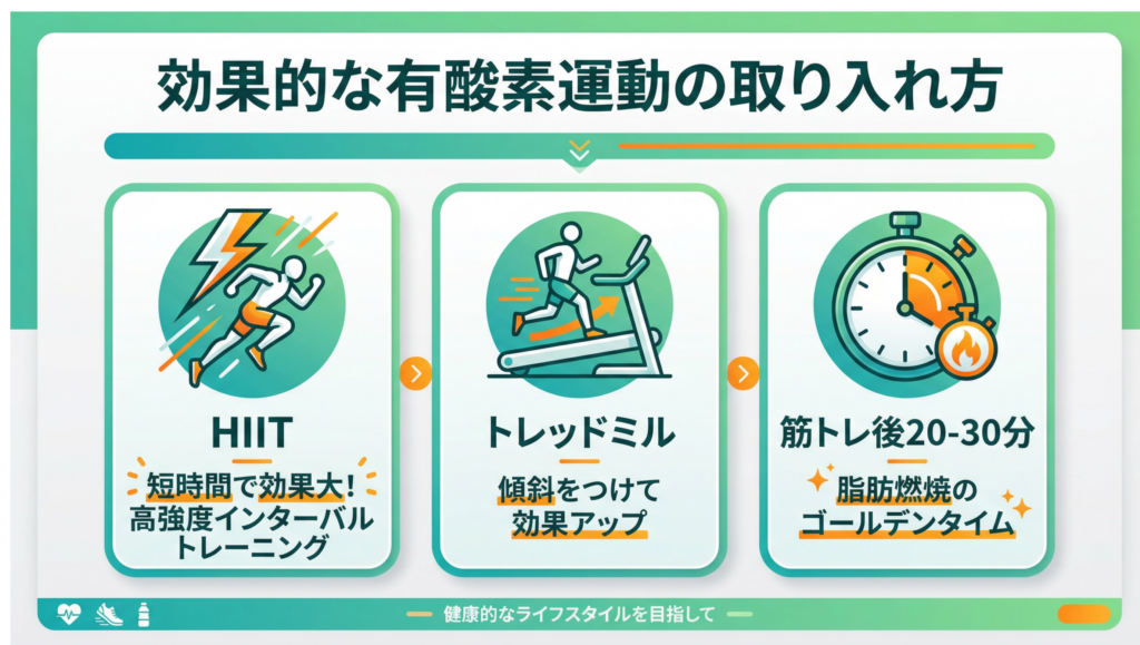 ・有酸素運動は短時間で効果が得られるHIITがおすすめ